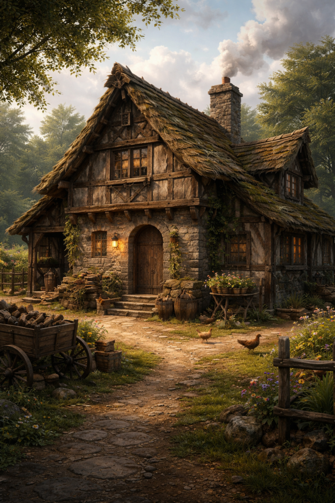 Mais do que conforto, a casa medieval priorizava a proteção. Muros grossos, portas pesadas e localização estratégica eram comuns. A vida era comunitária, simples e muito ligada ao trabalho manual.