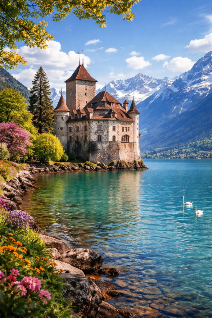 A Suíça é famosa por seus castelos encantadores, muitos deles parecem saídos de contos de fadas, cercados por lagos cristalinos, montanhas alpinas e vilarejos históricos.